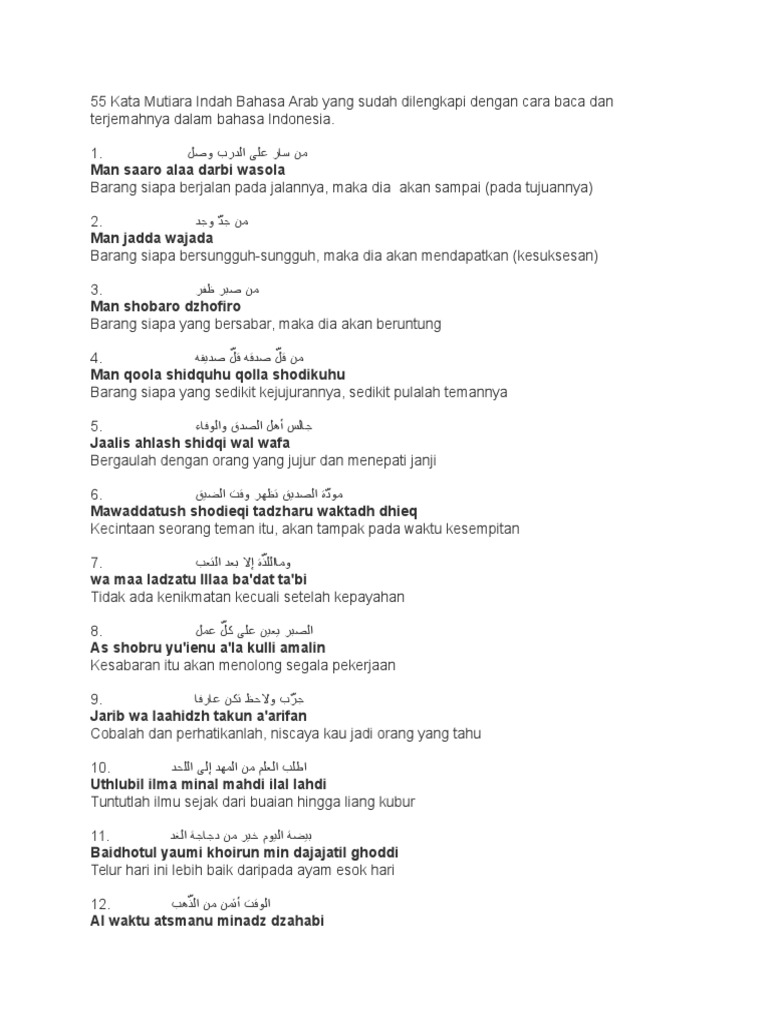 Kata Mutiara Indah Bahasa Arab . Sumber Gambar : www.scribd.com