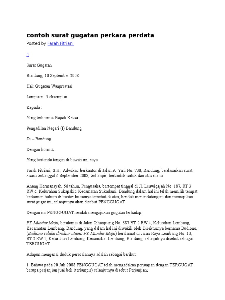 Contoh Surat Gugatan Perdata Kasus Tanah Download Sumber : gambarstatus.com