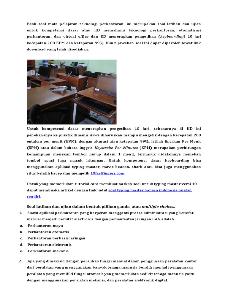 Contoh Soal Pilihan Ganda Teknologi Perkantoran Beserta Sumber : jawabansoallengkap.blogspot.com